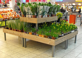 Ob Gestelle aus Metall mit höhenverstellbaren Wannen, Kopfelemente für Schnittblumen, Blumentische aus Holz mit oder ohne Kühlung: Wir passen Sie dem Erscheinungsbild Ihres Marktes in Optik und Größe an!
