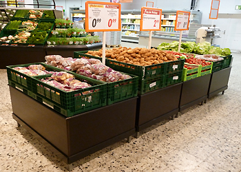 Unsere Einzelwarenträger zeichnen sich durch ihre Schlichtheit und robuste Ausführung aus. Mit ihnen wird das Warensortiment Ihrer Obst- & Gemüseabteilung ins rechte Licht gerückt. Die Abteilung erhält eine übersichtliche Struktur, ist bedienfreundlich und lädt zum Einkaufen ein.